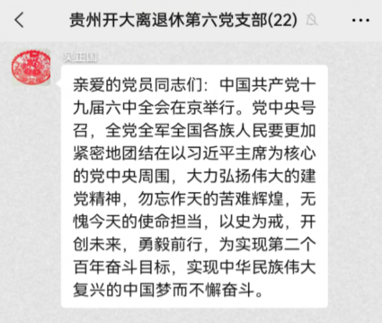 离退休党总支通过总支微信群学习传达全会精神