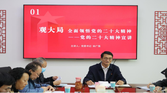 宣讲中,宋广强以“观大局——全面领悟党的二十大精神”为主题,从深刻领会党的二十大主题、深刻领会过去5年的工作和新时代10年的伟大变革、深刻领会开辟马克思主义中国化时代化新境界、深刻领会新时代新征程中国共产党的使命任务、深刻领会中国式现代化的中国特色和本质要求、深刻领会教育科技人才方面的重大部署、深刻领会坚持党的全面领导和全面从严治党的重大部署等七个方面,深入浅出阐释了党的二十大报告内容,主题鲜明、条理清晰,具有很强的思想性和指导性。