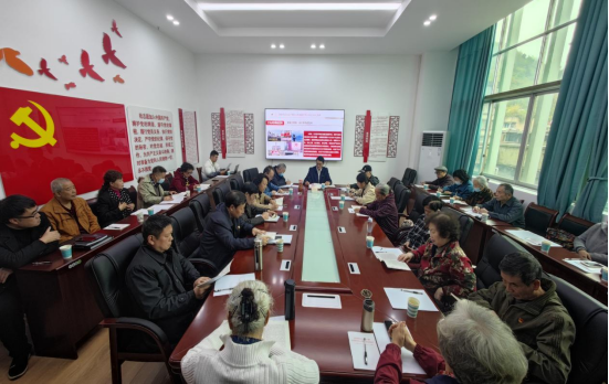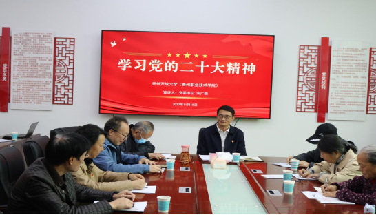 11月18日,贵州开放大学(贵州职业技术学院)党委书记宋广强在八鸽岩校区离退休党员会议室为离退休各党支部书记、老党员作党的二十大精神宣讲报告。