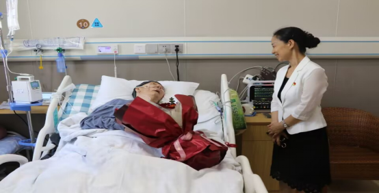 老党员孙志明如今已95岁高龄,因身体原因长期卧床,家属一直陪伴在身边悉心照顾,今天再次感受到来自组织的温暖,家属非常高兴并表示,感谢学校的关心关怀,祝愿学校发展越来越好。