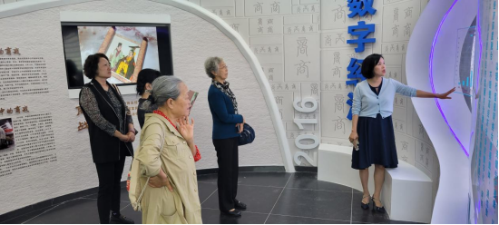 同志们精神饱满、兴趣盎然地依次参观了商贸学院全息体验馆、主题教育开展及教学成果展示墙、建工学院贵州侗人古建大师工作室、绿色建筑及节能技术协同创新中心、贵州侗族古建研究中心、建筑测量实训室、建筑材料实训室、建筑力学实训室、工程造价实训室。每到一处,各部门的负责老师都非常认真,向前来参观的老同志们耐心细致地讲解、演示和答疑。