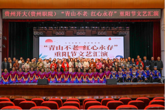 文艺汇演最后,全体演职人员、师生代表齐声高唱《团结就是力量》,校领导移步台上和老同志们合影留念,2023年重阳节庆祝活动圆满落下帷幕。